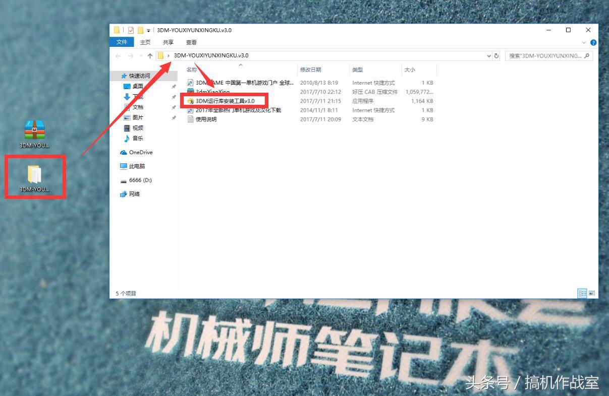 1、下载好的游戏组件是一个压缩文件,我们需要先把文件解压成文件夹。然后打开文件夹,并点击里面的“3DM运行库安装工具”应用程序。
