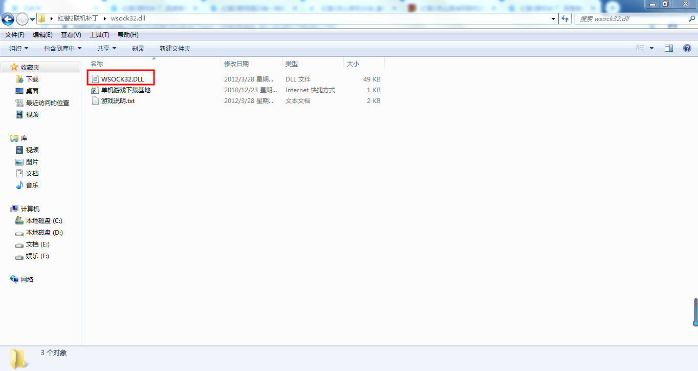 然后将其文件夹下的WSOCK32.DLL所有要联机电脑的红警安装根目录下。