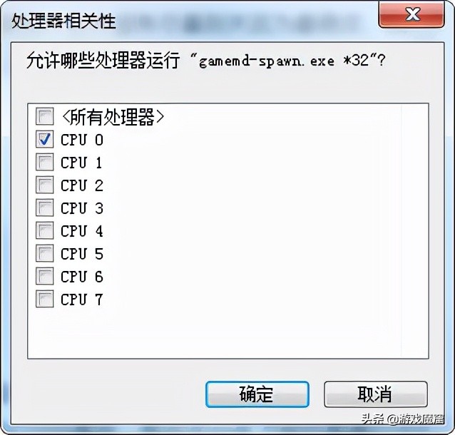 3.单核运行,打开任务管理器,找到游戏进程,右键只留一个CPU,有的平台支持设置单核运行游戏,设置好即可。