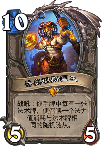 国王则是一张在预览季被低估的卡牌,高费用而且战吼条件苛刻,但是在宇宙法中,国王是非常重要的铺场手段,而且一旦打过露娜的口袋银河这张牌以后,低费国王打出就能够制胜,国王甚至已经被很多玩家加入了控制法的构筑,多一波铺场对打战士来说非常关键。