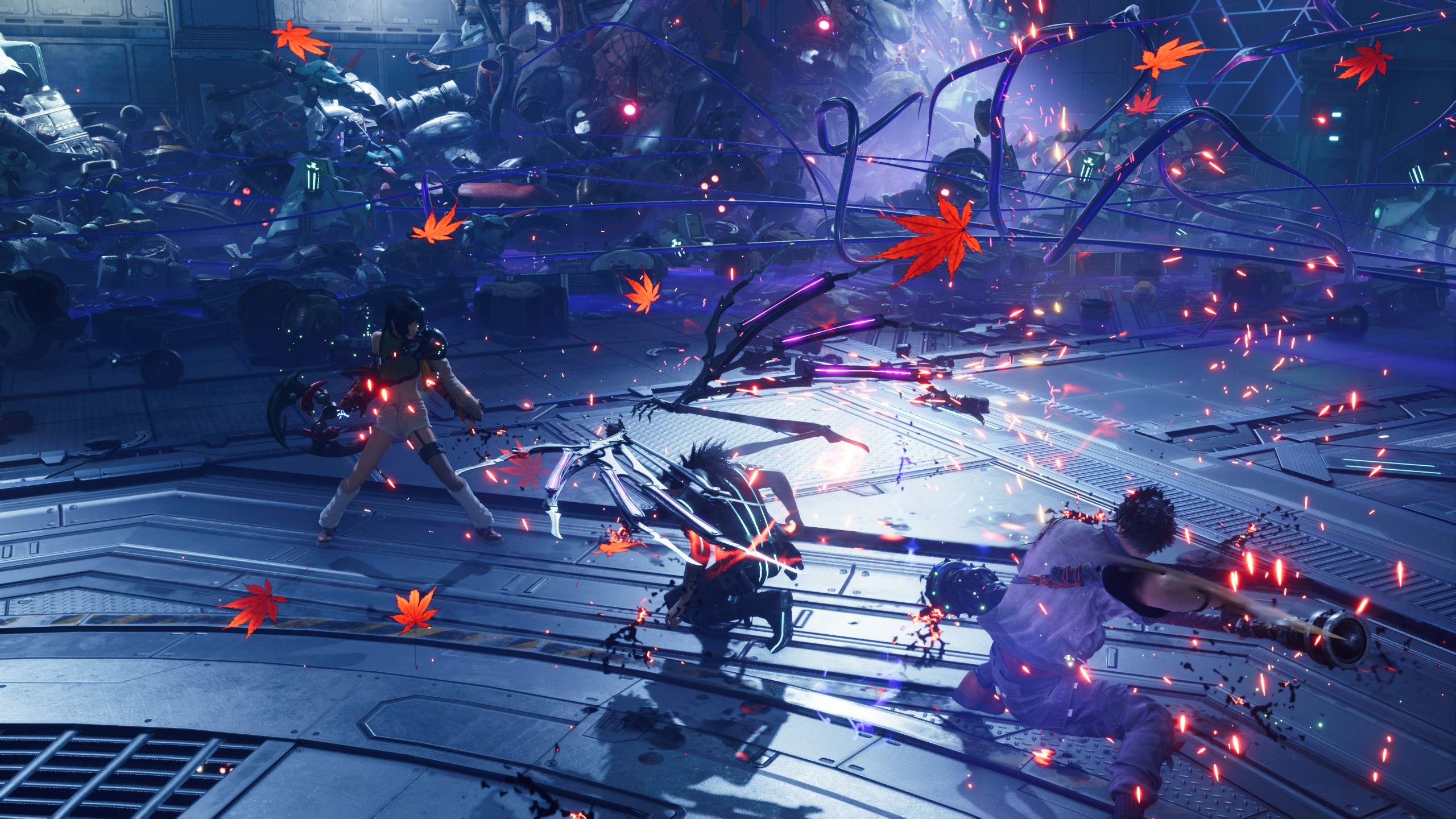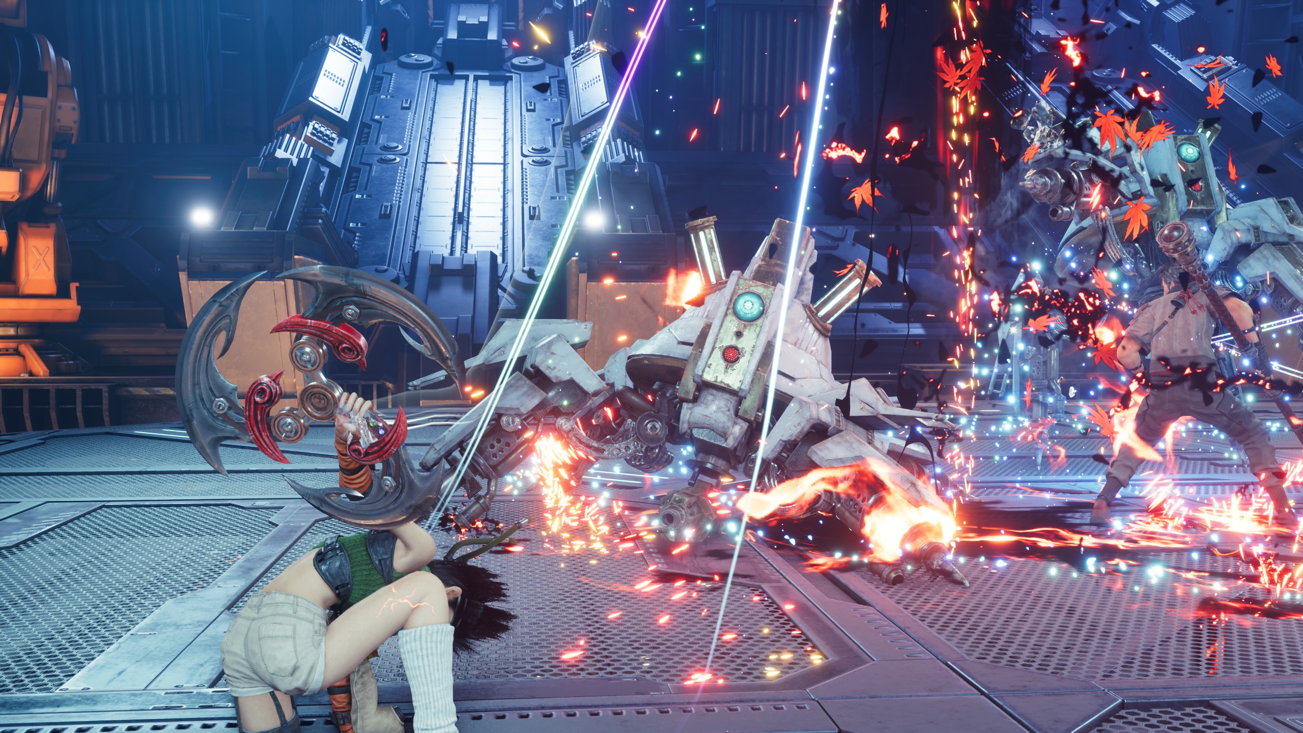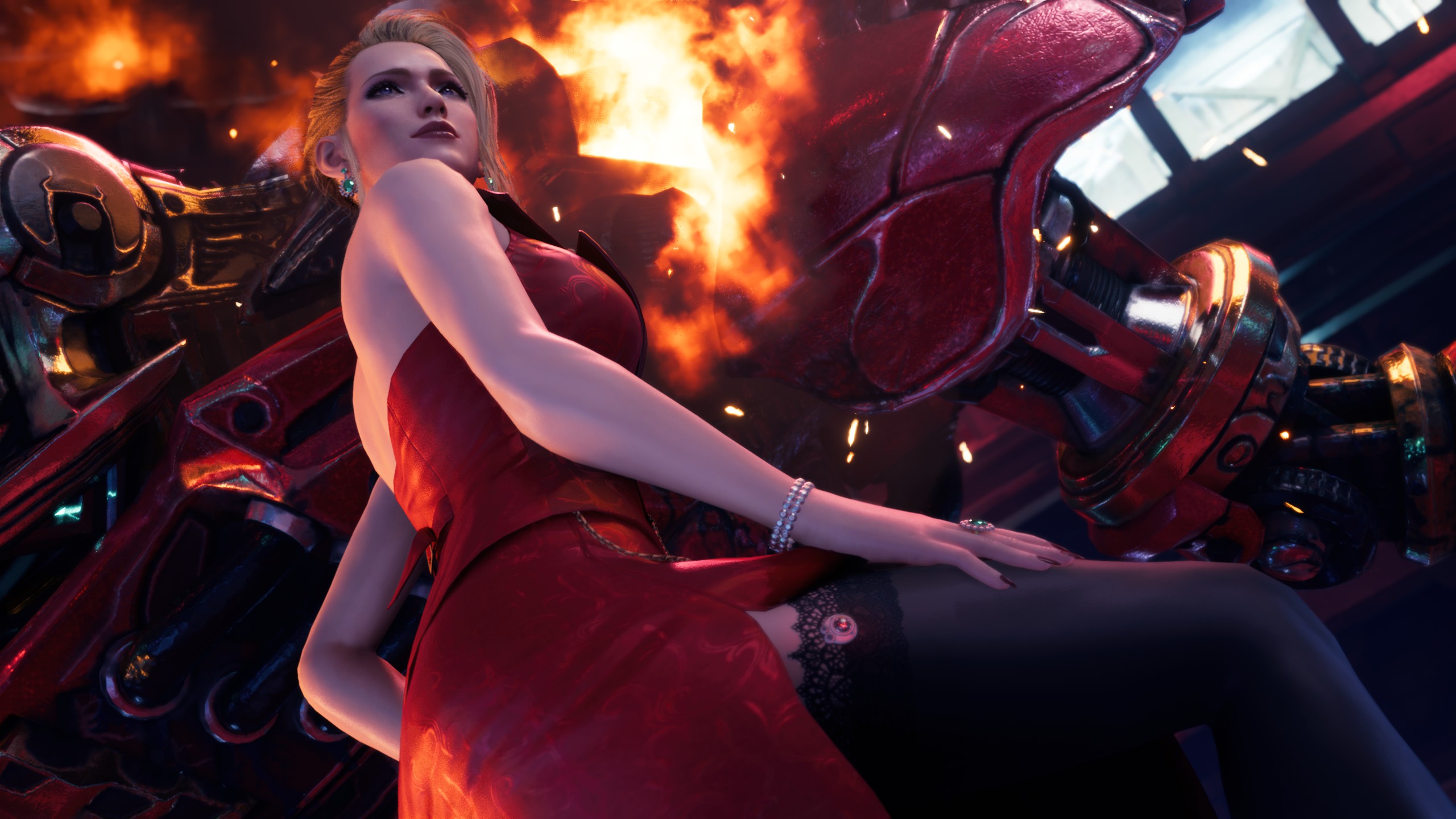 作为尤菲DLC中的头号反派,SM女王风格的神罗干部斯卡雷特也获得了大量的表演时间,作为兵器开发部门的领导,有一场BOSS战就是与她驾驶的机甲进行战斗。