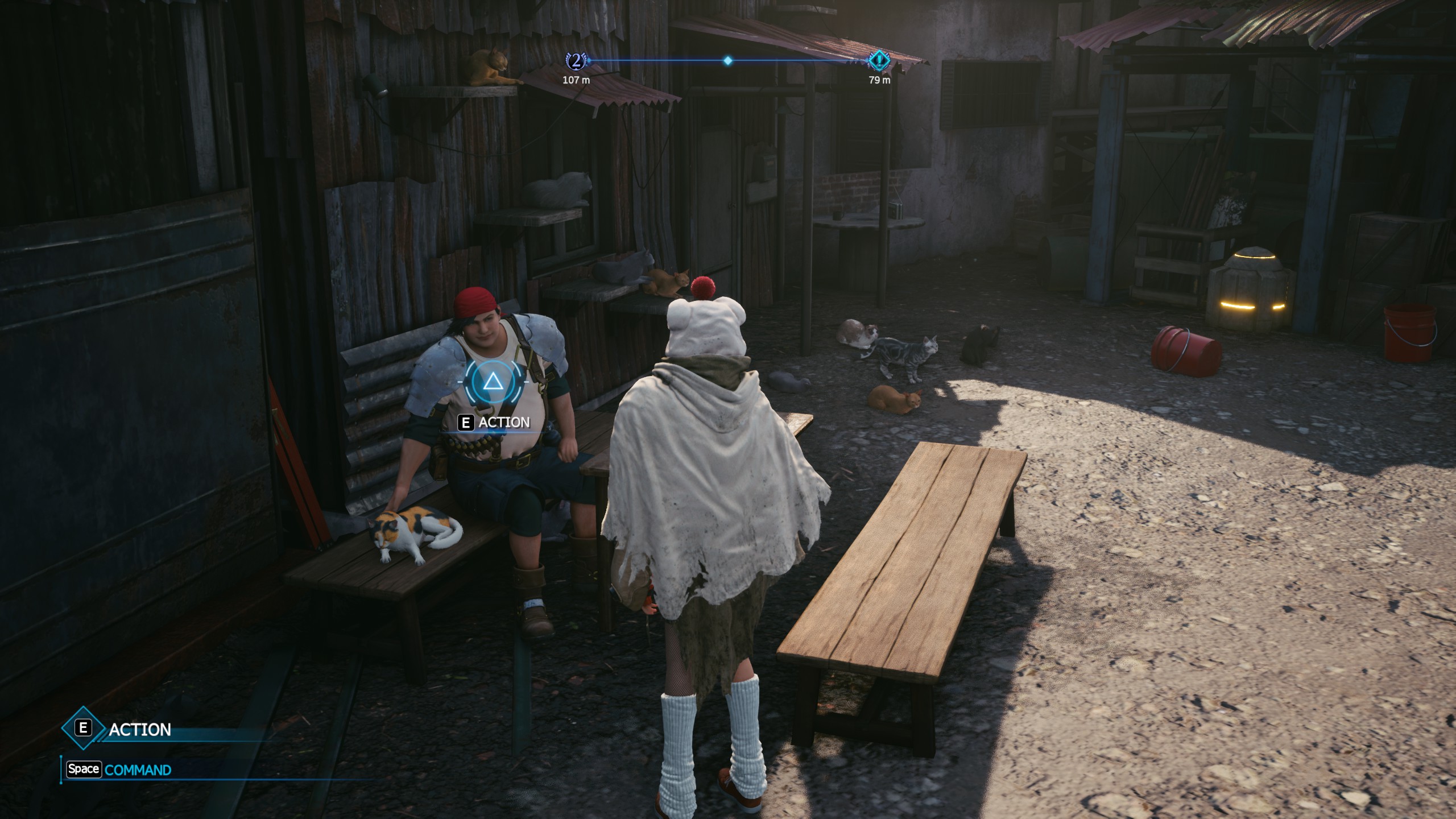 那么作为一个间奏任务,尤菲是如何参与到故事中来的呢?这一部分作为重制版的原创内容,制作组还是很巧妙的找到了切入点——那就是大概从袭击第5魔晄炉之后,从克劳德教堂重逢爱丽丝开始,到圆盘坠落第七贫民窟化为废墟为止的剧情“空窗期”。在这个时间段内,尤菲恰好参与到了故事之中,又恰好和主角团队都“擦肩而过”,在第一章的内容中,也可以与雪崩分会的三人组有偶遇和额外对话(还有下棋)。