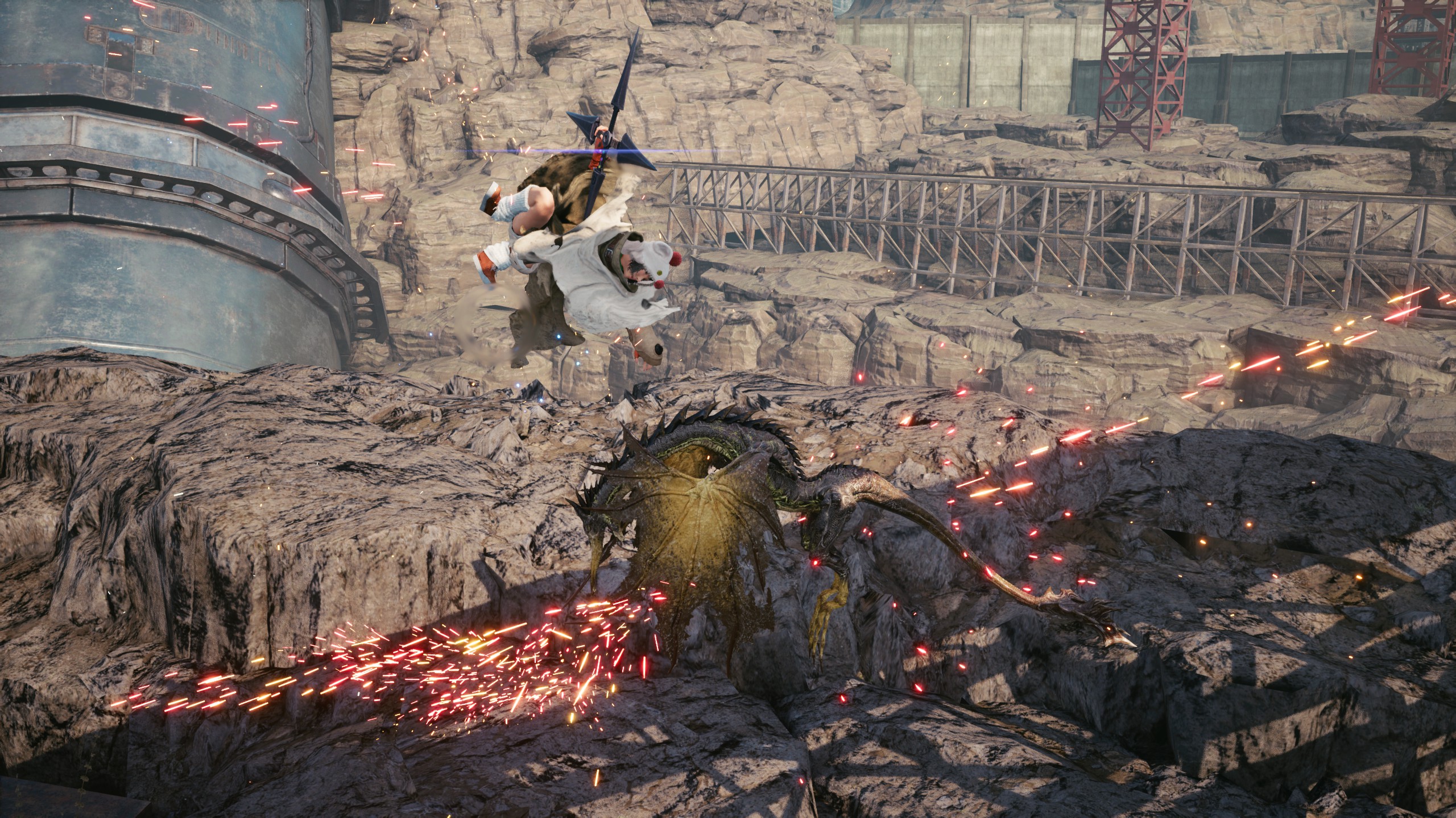操作感增强其实带来的一个重要问题就是它和“切换角色”某种意义上是相斥的(所以更加需要FF12的战术系统回归),在尤菲DLC中,队友索隆是不可以直接操作的,我们只能控制他使用能力,以及使用新增的“合击模式”——在合击模式下,索隆会配合尤菲完成攻击行为(但ATB条累积速度会减半),游戏中还有大量的特殊魔晶石来强化这种战斗方式。