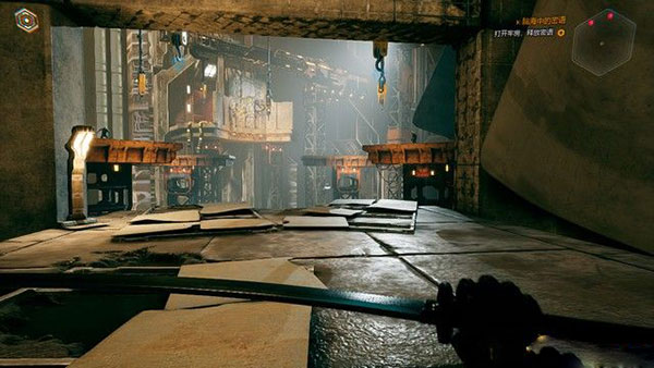 第二章:真相一角继续向牢房出发,从这一关开始,将会出现大量的钩索,使用右键即可荡过去。