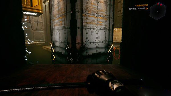 最后跳上如下图箭头所指的橘色机关,一路往上便可通关。赛博空间主要就是介绍剧情,大意是一个叫玛拉的女人夺取了政权,而你作为幽灵行者则要反抗她的暴政,开场动画的女BOSS就是玛拉。