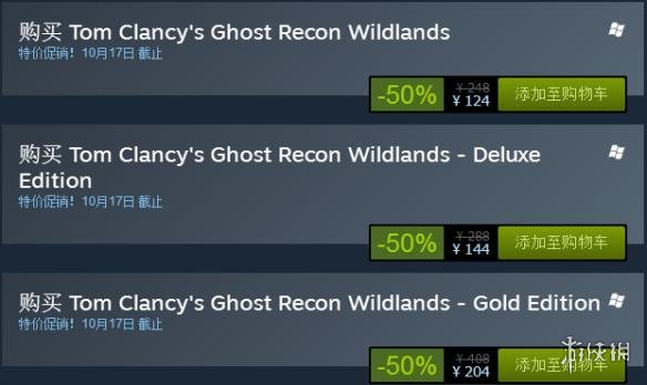 游戏目前的本体、豪华版以及包含季票的黄金版均优惠50%,普通版现价为124元。游戏的季票单独优惠15%,现价126元。