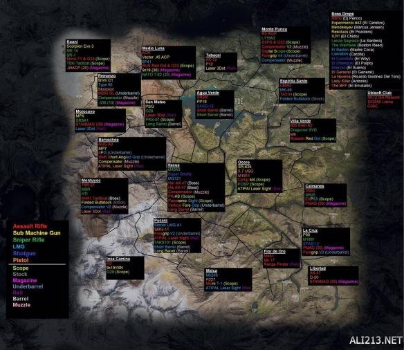 幽灵行动荒野已经正式发售,很多玩家已经迫不及待的第一时间进行了游戏体验,对于武器及配件位置分布还摸不清楚的小伙伴们,随小编一起来看下这篇幽灵行动荒野武器及配件位置高清地图介绍吧。