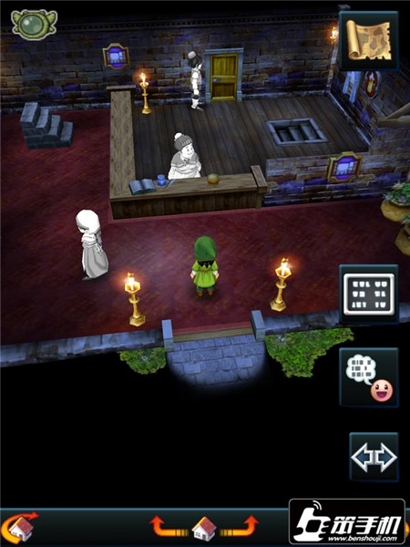 7。从屋子出来后,发现大家都往右边的花坛聚集。亚路斯一行人也想过去,但是门口被2个人挡住了。没办法我们只能从后面绕过去了,就像图中那样先和守门人对话,随后他就会打开后门。