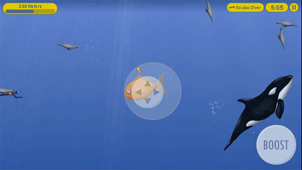 在游戏中,你将扮演与贪得无厌一个微小的金鱼。通过你的老板被营养过剩后,逃进大海,开始吃,你遇到的一切。你吃的越多,越大你拿!