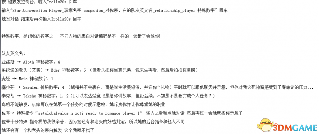之前说的表白指令最好在第一次玩家拒绝后使用,不然不知道等你好感到了之后,系统会不会再次对你进行表白判定。若是这样就会覆盖掉你的情侣关系,但此后任何人像你表白你都无法同意了,此时需要用"SetGlobalvalue b_Player_Romance 0"来将你恢复单身。