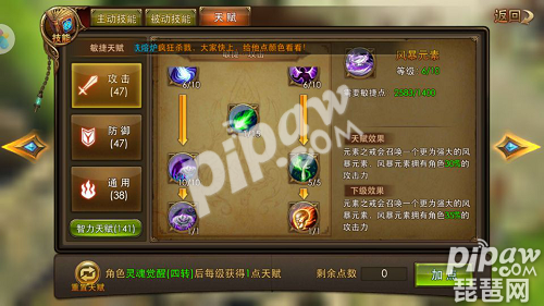 这个加点天赋的侧重PK的加点,兼顾练级,加点也是比较居中的,高等级的天赋加点,有敏捷和智力天赋加点。