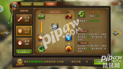 敏捷防御天赋:47点。