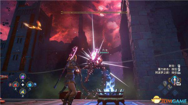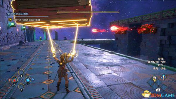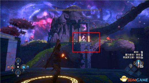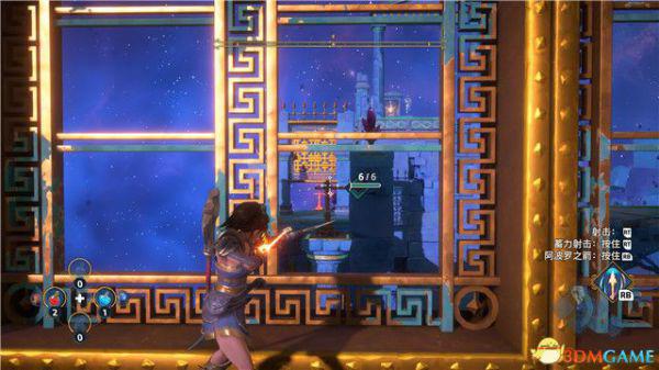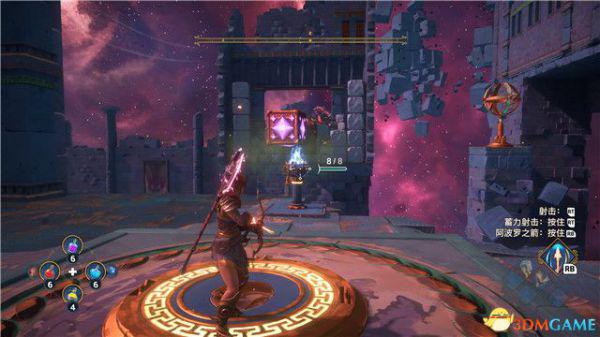 最后一个靶子距离较远,你需要使用阿波罗之箭技能,控制箭矢飞向目标。