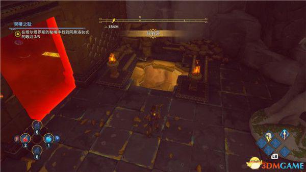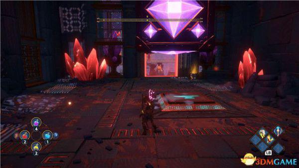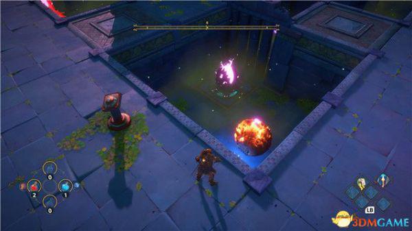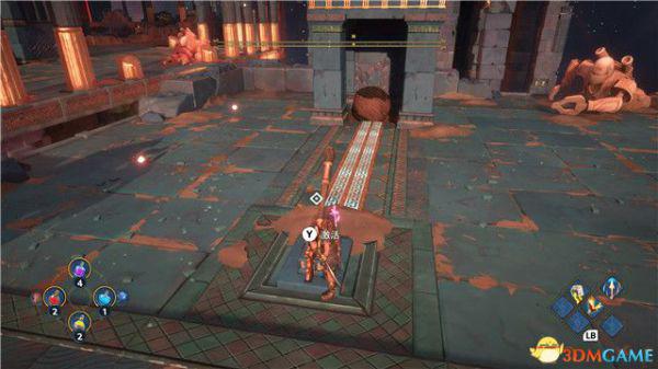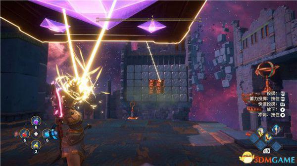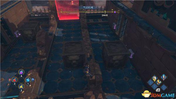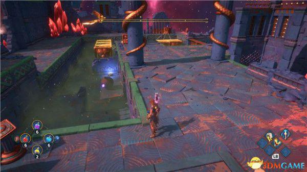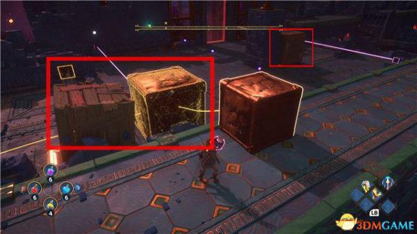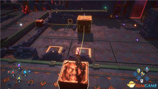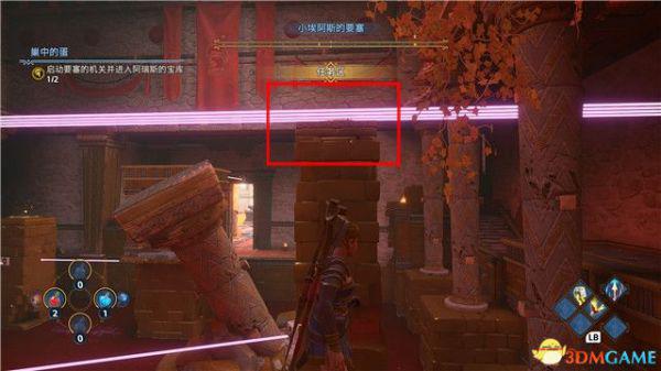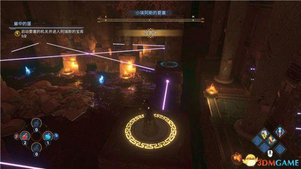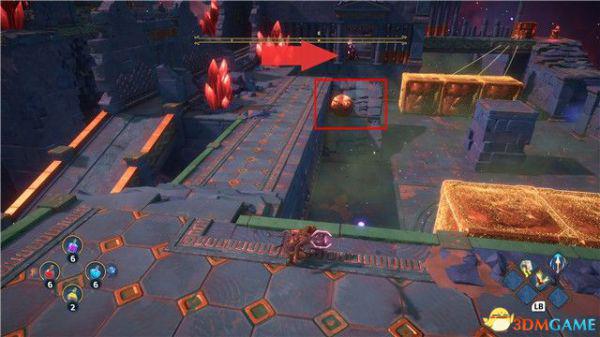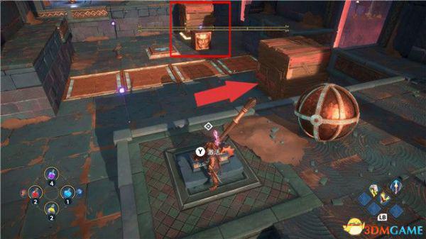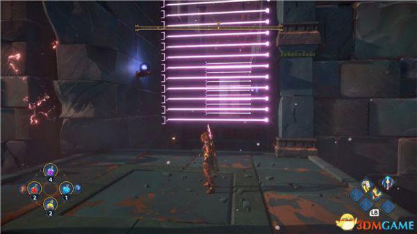 这个秘境的挑战还是比主线的秘境简单很多的,你需要躲避这里的紫色激光线,并将木炭球推进地板凹槽里。