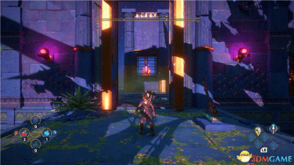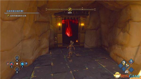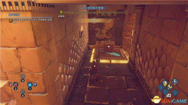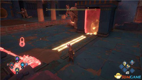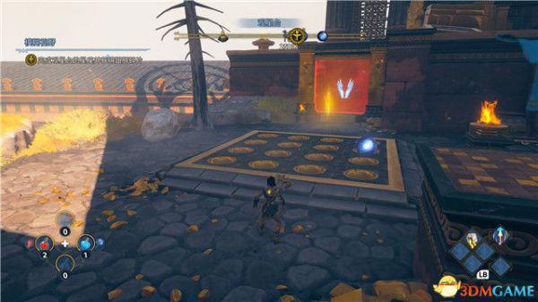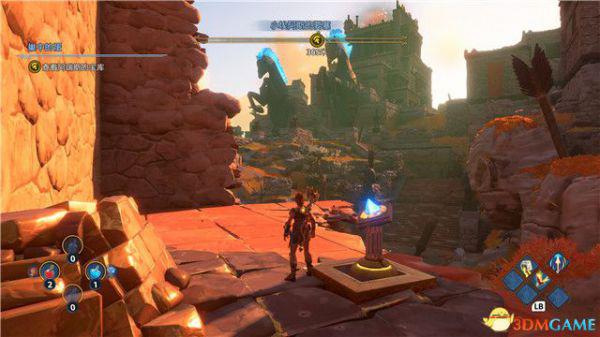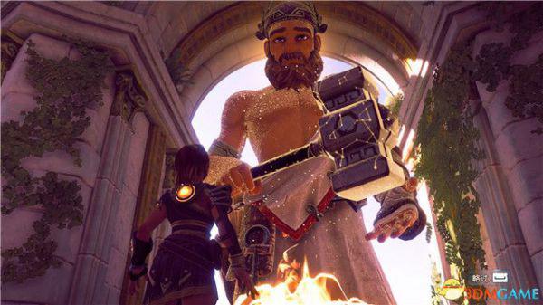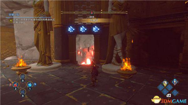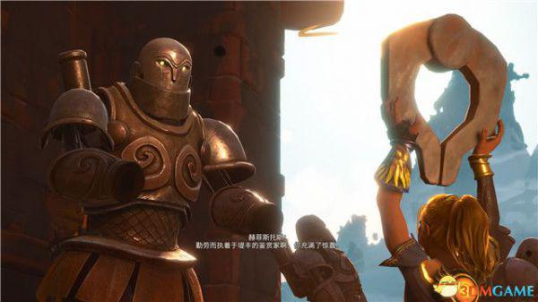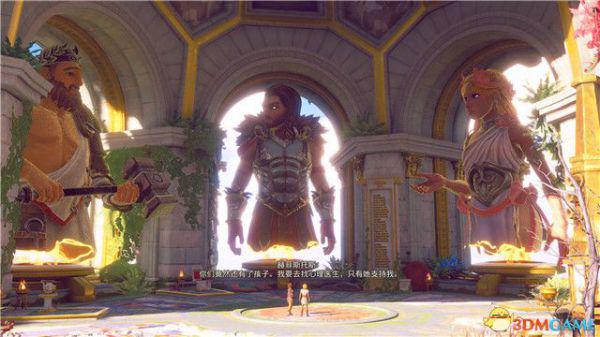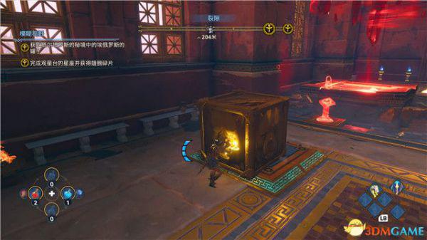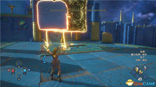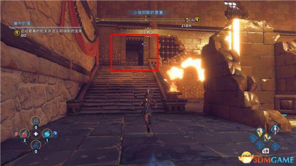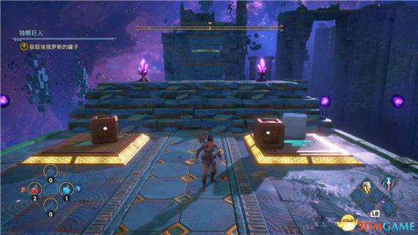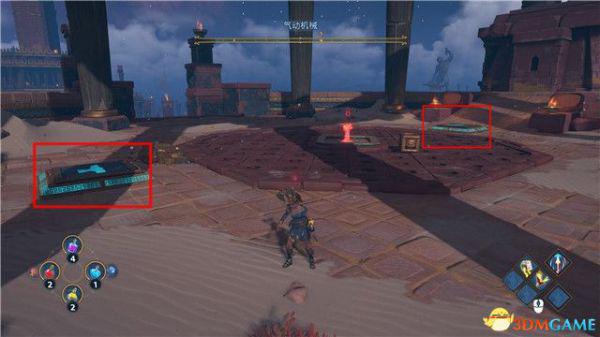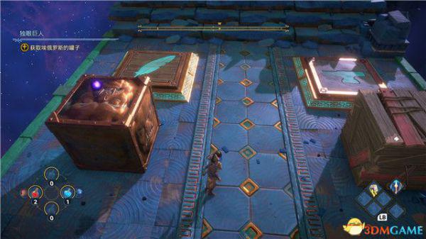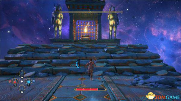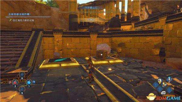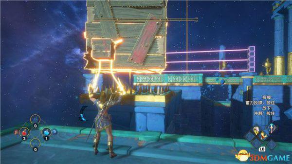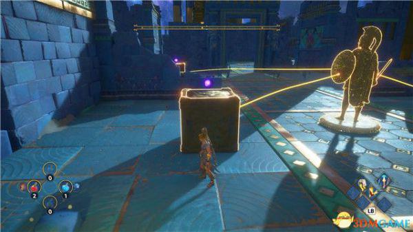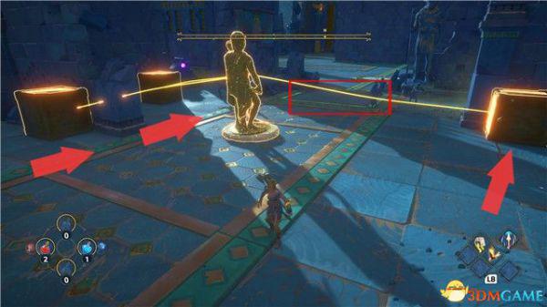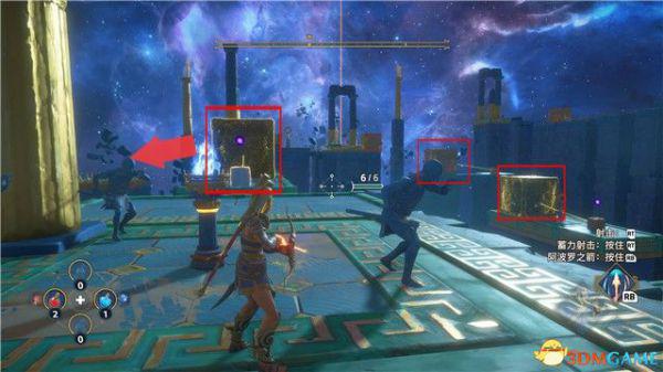 第一个解谜场景需要你使用海克力斯之力获得远处的箱子,之后将它放在羽毛开关上。