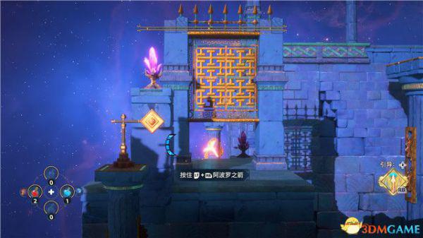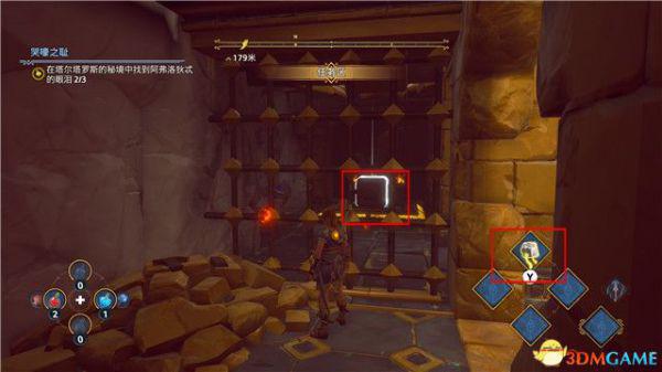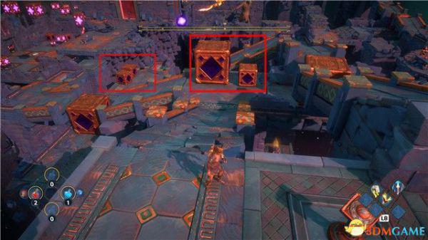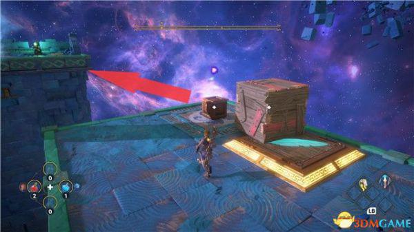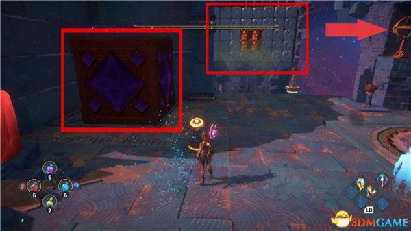 接下来的解谜是将木箱推到前面的位置,你就可以站在木箱上跳到更高的台阶。