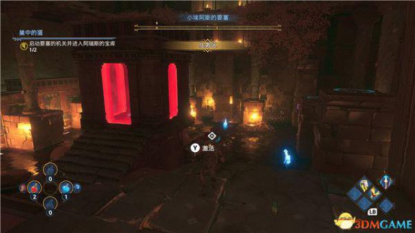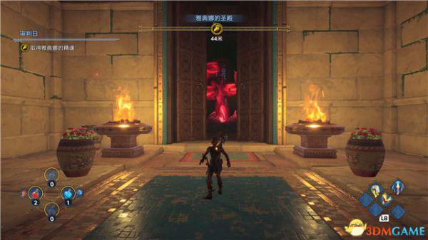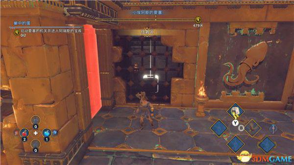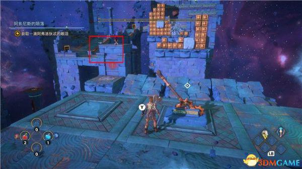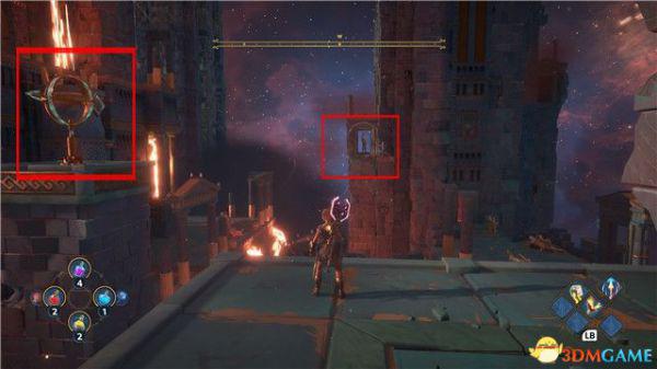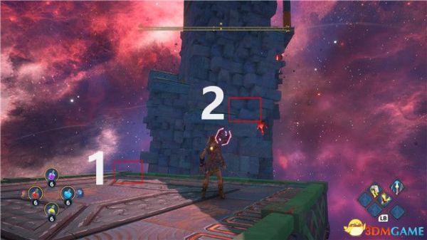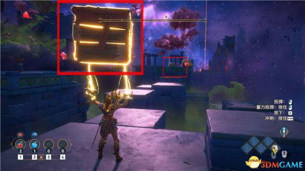 这里面你需要从1处加速跳到2处(长按手柄X键可以启动雅典娜加速)。