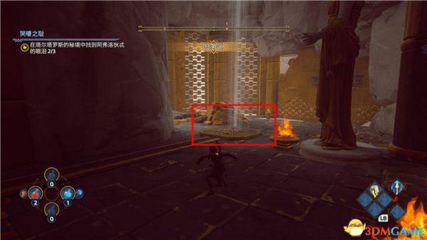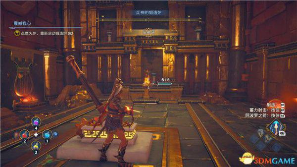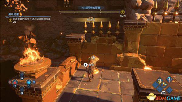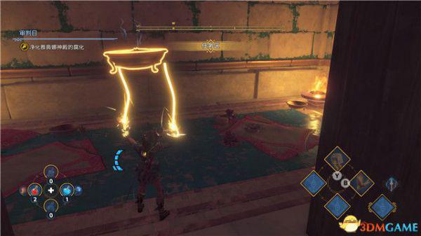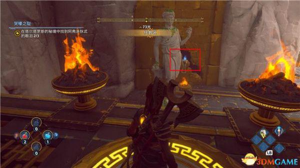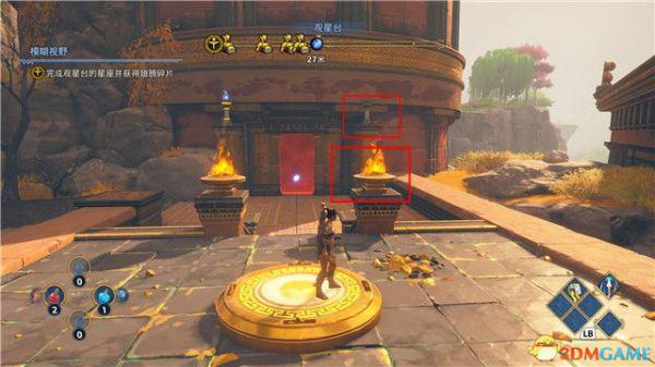 站在这个位置,使用丘比特之箭射击火盆,引燃箭矢后,让它命中远处的火盆。