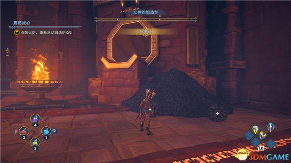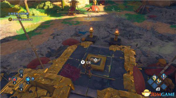 把它拉到篝火盆处,点燃之后,将它移动到对应的凹槽里。