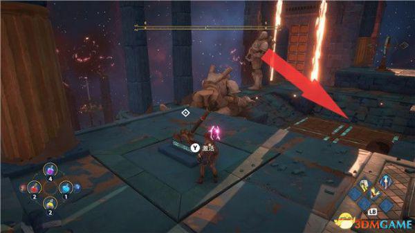 接下来,你需要激活这个杠杆,调出左右走动的石阶。