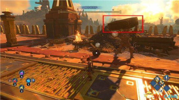 激活这里的控制台,你将获得木箱,将它放在羽毛板上,触发前面的阶梯。