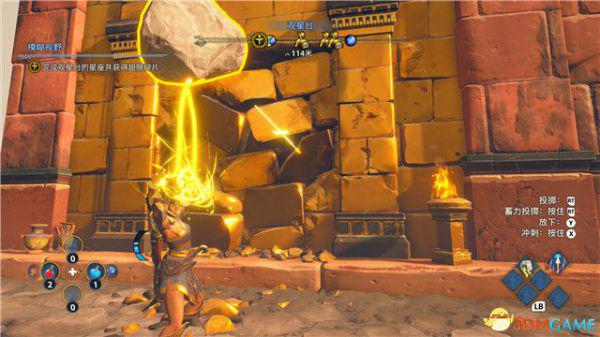 然后,打败这里的巨人,你可以使用他投掷的石块砸他,伤害比较高。