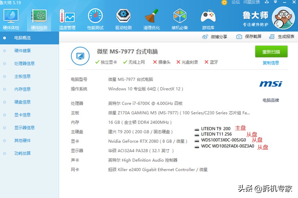 2016年自己装的新机,新显卡还是用的刚刚的。然而随着游戏的升级对性能提出了越来越高的要求,不得不将显卡升级成了最新的卡皇来确保了在游戏中的不卡顿。而对于硬盘升级可以说一直没有停止过,硬盘的升级相对来说比CPU和显卡更经济一些,毕竟价格相对便宜,一块顶级固态不到一块顶极显卡的一半的价格。7年前第一台电脑上的1T小黑,当年也算是很火爆的高性能机械盘,2016年换了电脑硬盘舍不得丢,用来做从盘放文件再合适不过,这么多年用下来也没坏过。所以主盘用SSD而机械盘挂从盘,相信大家都是这么用的。