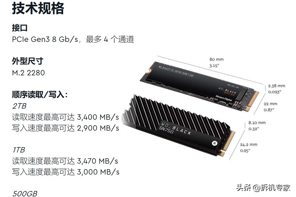 WD_Black SN750 NVMe SSD 1T是由2片512G的3D闪存颗搭配1G海力士DDR4,及闪迪007011主控组成。