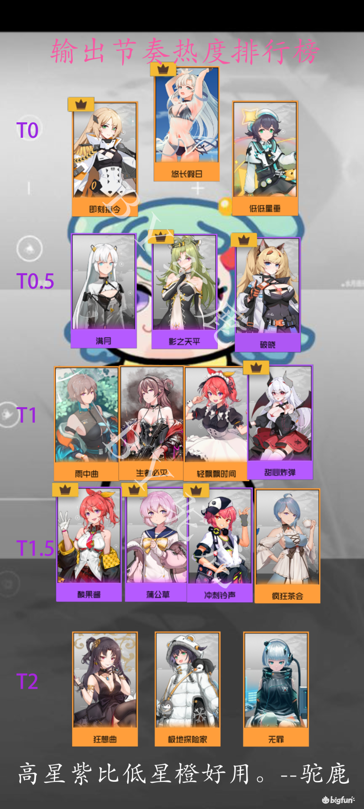 注意角色星级是很重要的东西——三星的橙色c没有五星的紫色c强