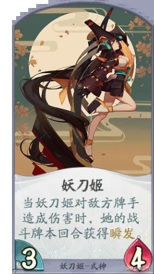 妖刀姬是一位输出爆表的式神,她自身基础能力和其卡牌的特性,决定了她可以在一回合打出多次攻击,成吨的伤害会让对手苦不堪言。