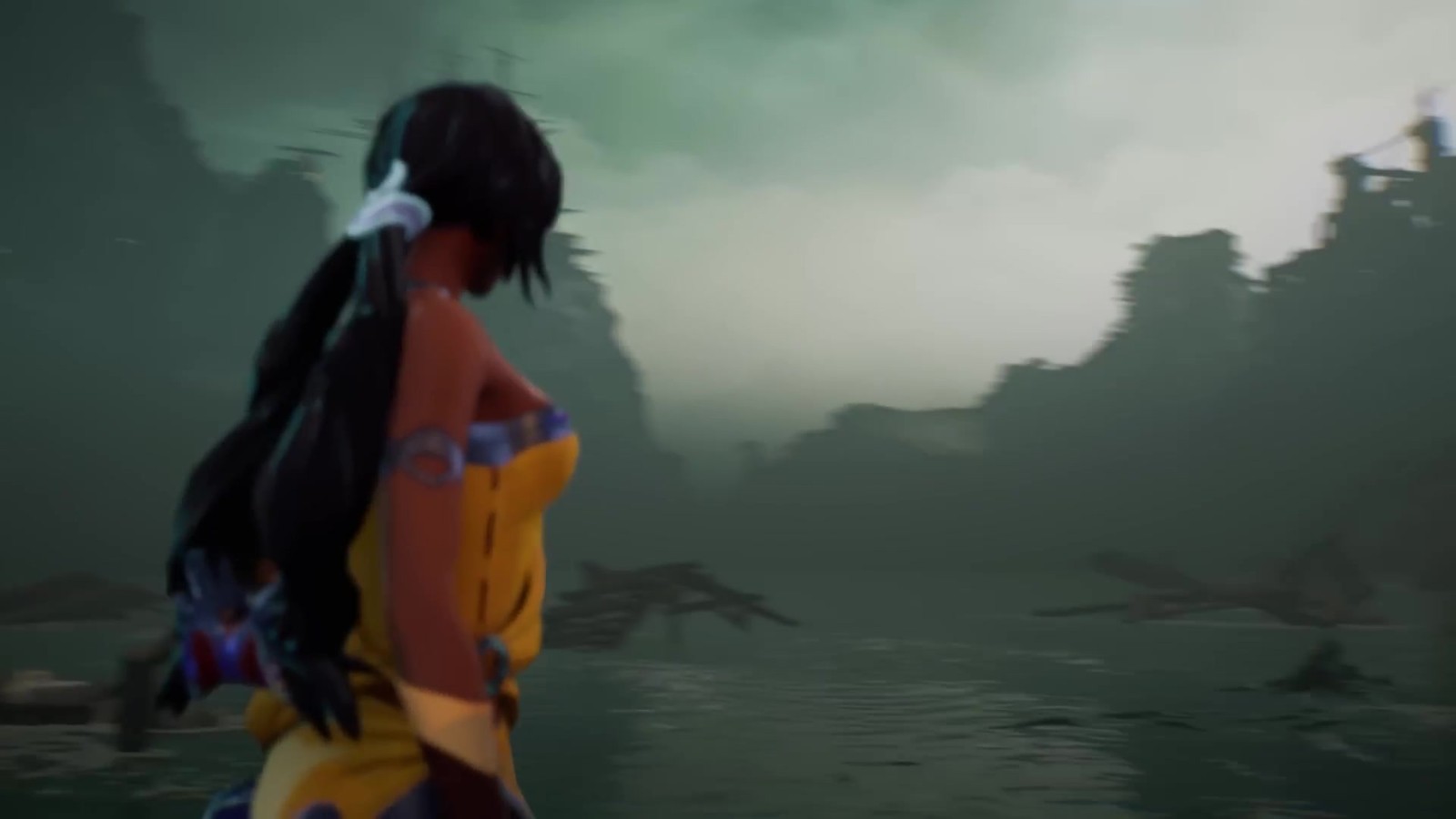 在预告片中,官方分享了她与怪兽作战的过场动画,以及她在峡谷中与其他英雄并肩作战的实机内容。
