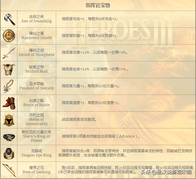 和指挥官技能一样,WOG中一共有10种宝物,每个指挥官最多装备6件。