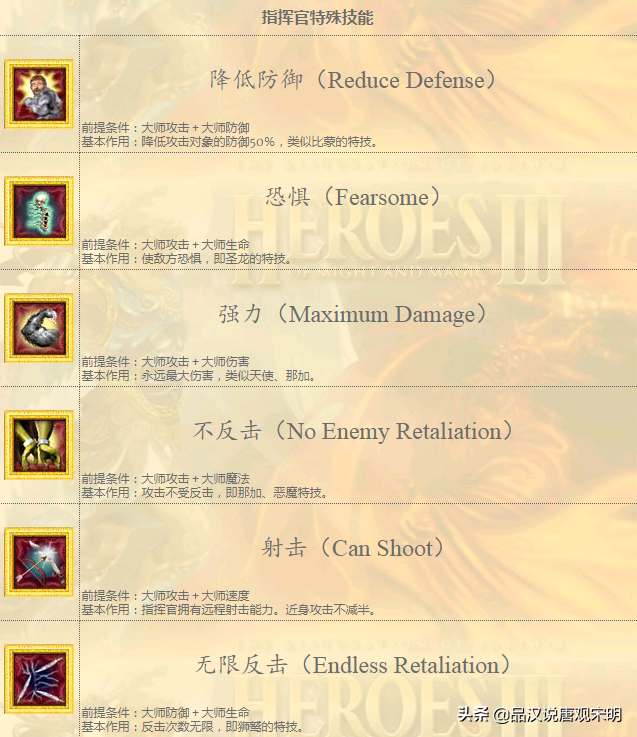 除此之外,指挥官还自带1点力量,1次施法,5%的魔法抗性以及0个弹药。