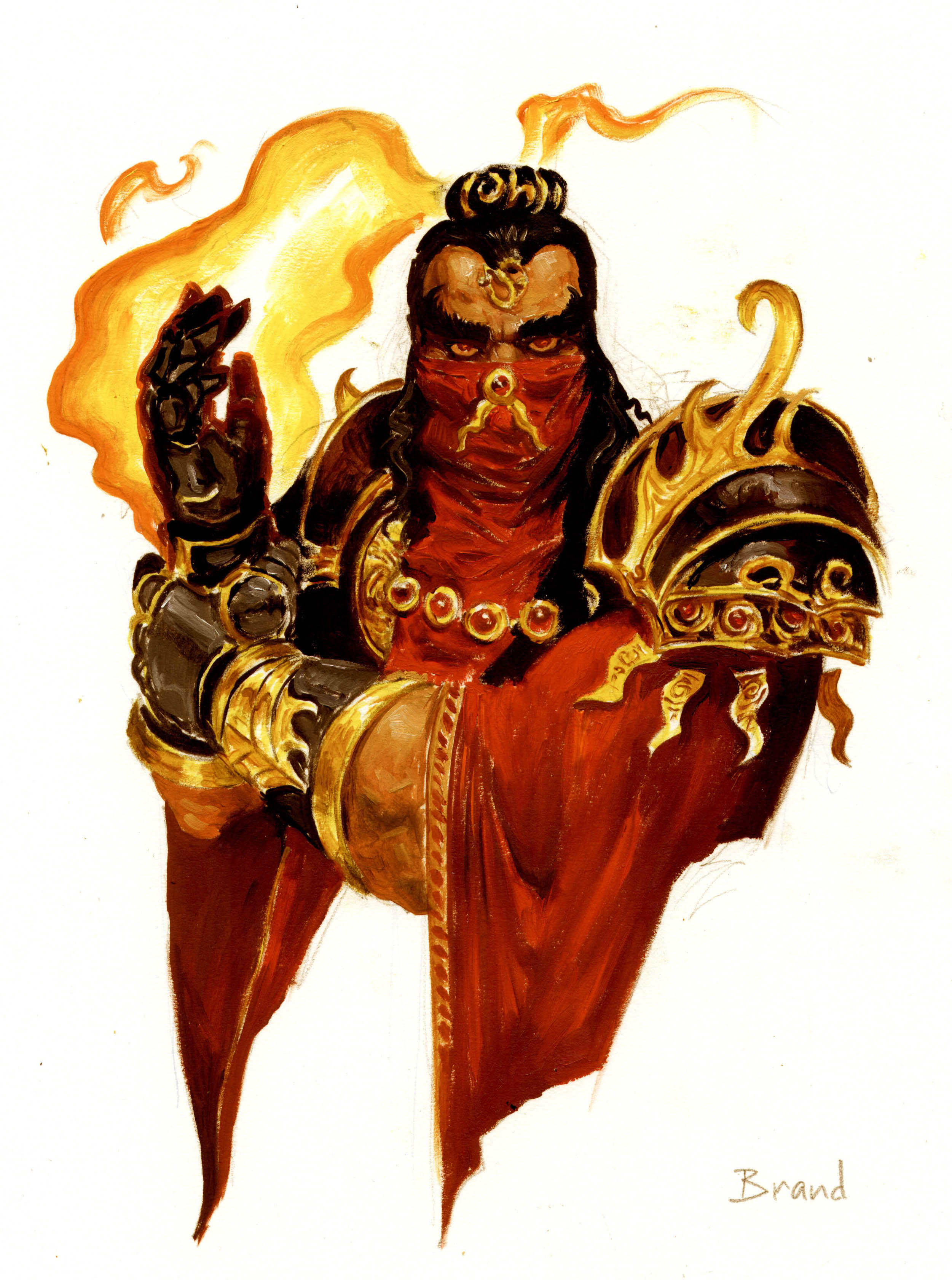 布兰德是一个沉默寡言、不擅交际、用红色衣料遮住自己的领主,受到了火焰之龙阿尔卡斯的眷顾。传言说,在他年轻的时候,布兰德在作符文实验时犯了错,并被可怕的火焰炙烧。然而他并没有因为这场事故而远离他的研究。正是由于他的执着和投入,才获得了阿尔卡斯的祝福,以及奖赏给他的超自然的符文魔法能力。英雄专属技能符文术师,精炼符文的机率增加20%,英雄每升1级,另加1%。