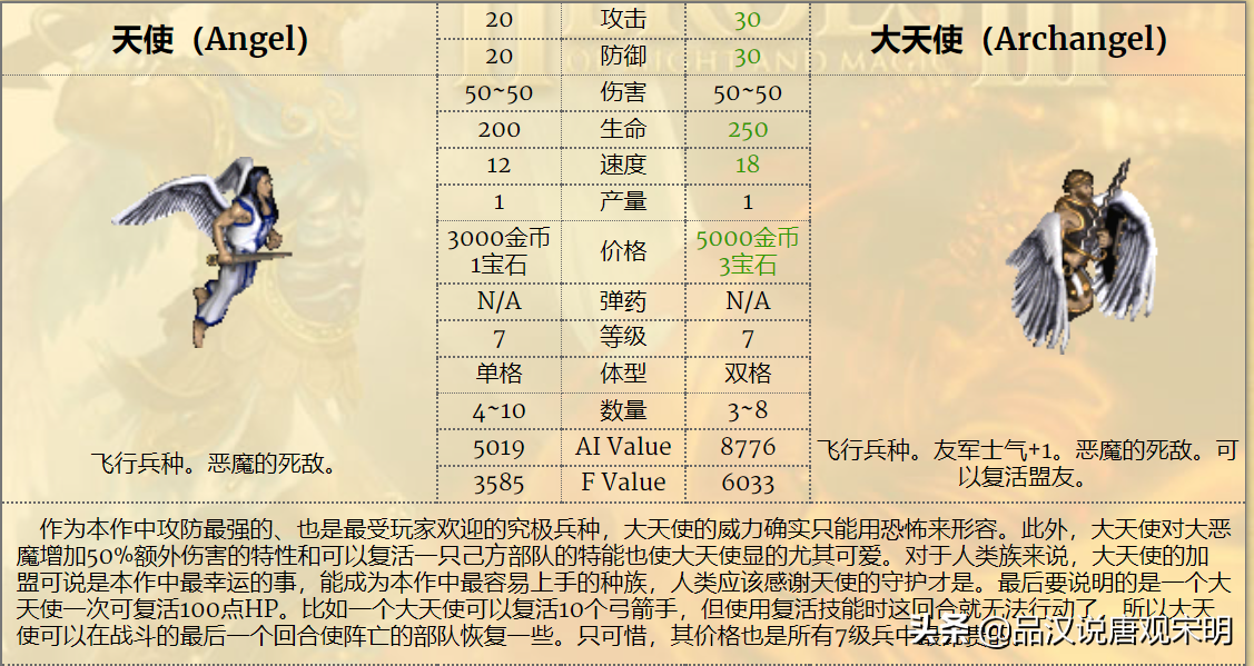 最高的攻防属性与伤害数值,第二的速度,不错的生命再加上会复活这个魔法。都让大天使坐稳了正义阵营联军的头把交椅。
