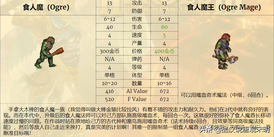 食人魔王的优点在于基础属性足够高,尤其是60点的生命。4级兵最高。