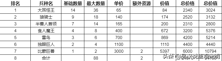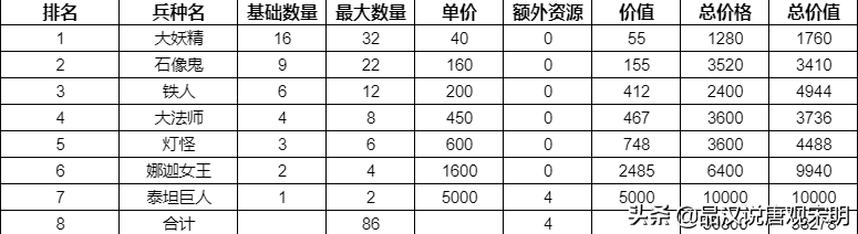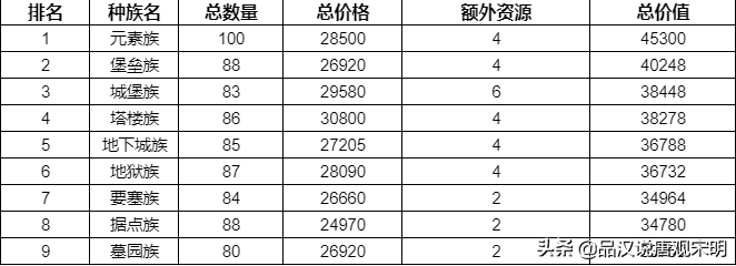可能很多人都没想到,其实堡垒族的兵种总价值排名第二,性价比系数也排名第二;而购买的总金币则是倒数第三。