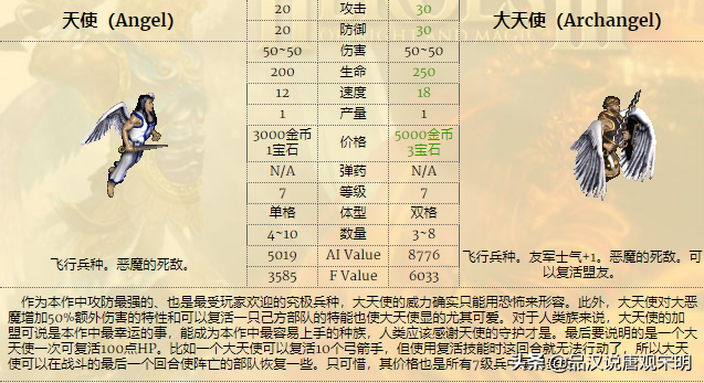 大天使的确非常厉害,但是在价值体系里,大天使的优势并没有那么大。大天使的战斗价值甚至低于黑龙。