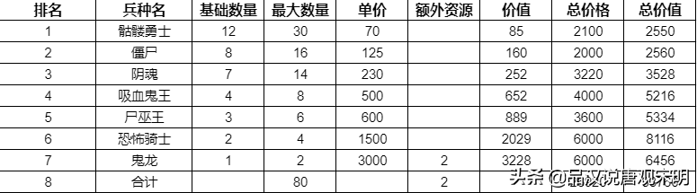2 九大种族的兵种成本