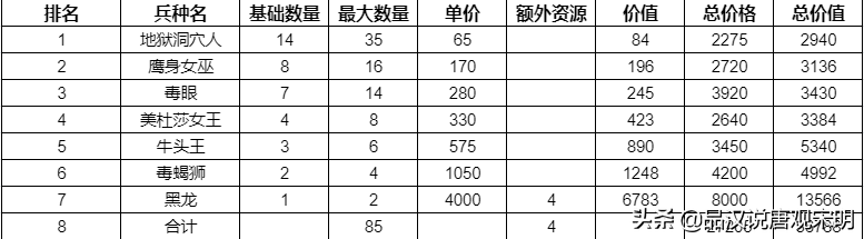 总体来讲,地下城族的一周总兵力算下来,似乎就是那种打厉害的种族打不过,打不厉害的种族又没人家性价比高。