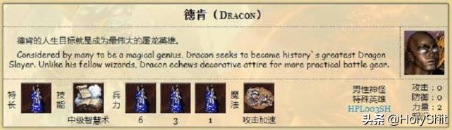 德肯:特长魔幻法师,初始自带中级智慧术。他的特长就是能把塔楼的法师和人族的僧侣升级为特殊兵种魔幻法师。在战役末日之刃-屠龙英雄中,为了证明个人实力,德肯屠杀了好多龙,著名的屠龙勇士。