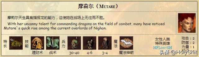 摩莉尔:特长龙,初始自带初级理财术和初级战术。他的特长能给龙类生物攻防各加5点,但可惜的是龙实在太少了。