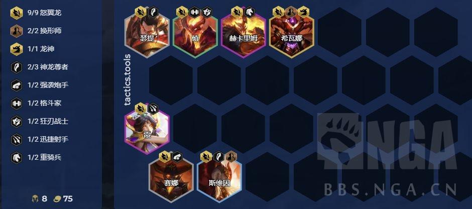 由于强行凑9怒意,会有大量的未激活羁绊,有时候会战力显得弟弟。而怒翼龙转职本身就能利用反曲弓+金铲铲合成,所以保障每局最好能拿到一个转职,可以极大增加阵容的厚度,我们理想的构筑为: