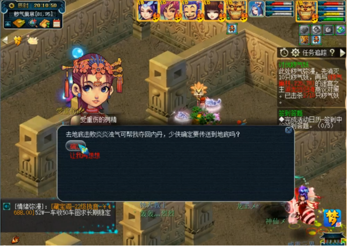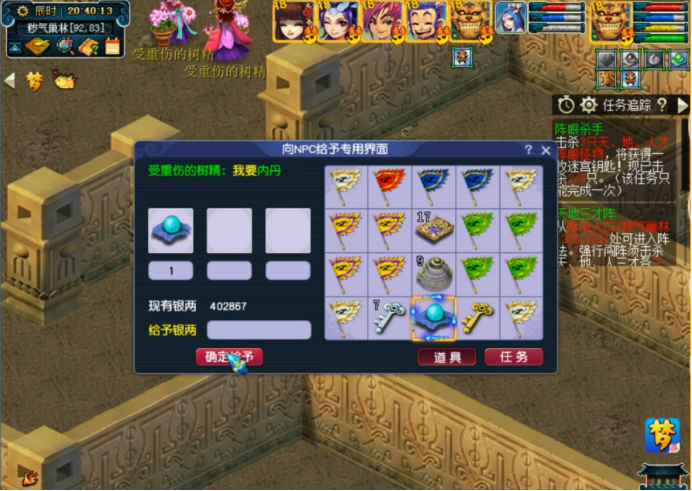 8点10分左右,帮派频道刷出“受伤的树精”,即所谓的“内丹”