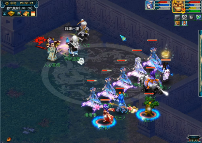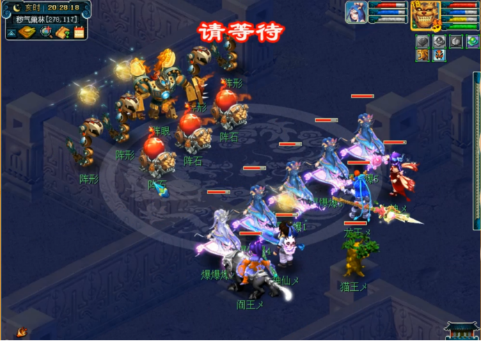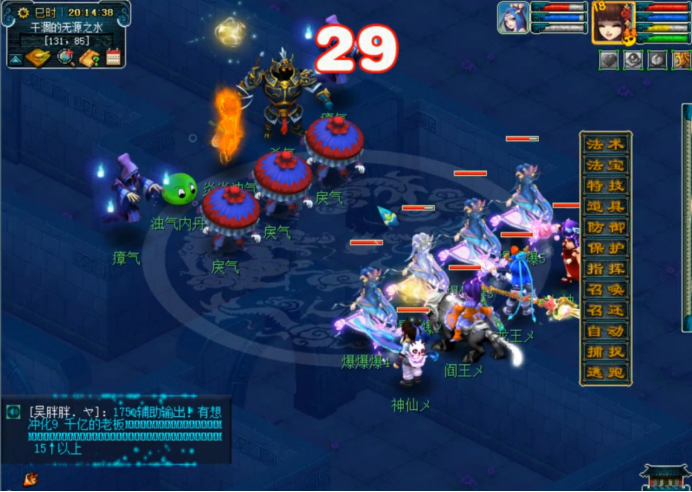 没啥事的话咱们接着把三才杀完,杀的时候留意帮派频道,把阵眼的坐标告诉外边合作的小伙伴。杀三才没啥技巧,点着主怪秒就行了,有地府的话可以给主怪上个小死亡,这样它就不会复活了。有人杀阵眼,主怪也不会复活。