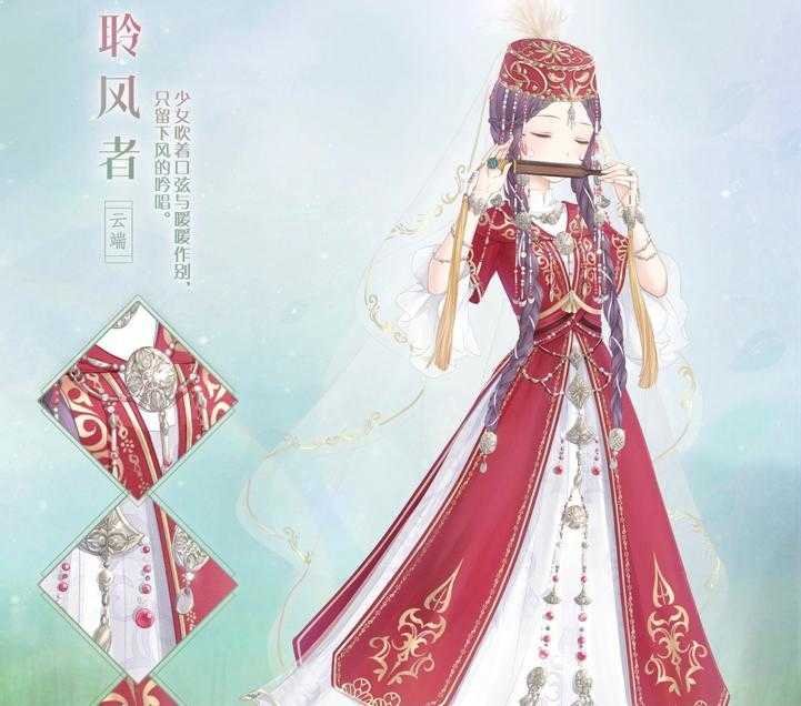 最后一个聆风者,这个套装风格跟上面三套都很不一样,这一套是一个具有民族风情的套装,对于这种非常有特色的套装玩家都还是蛮喜欢的,再加上聆风者的设计和质量确实都不错,红白色的民族服饰很有视觉冲击感,当时很多玩家看到这个套装第一眼想到来自新疆的迪丽热巴。