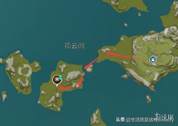 蒙德—时风岛(此位置需要从摘星崖飞过去,路途遥远,请记得提前准备恢复体力的/减少体力消耗食物)