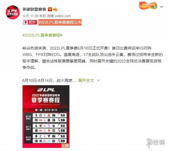 《英雄联盟》赛事官方今天(6月6日)公开了2022LPL夏季赛的赛程表,夏季赛将于6月10日正式开赛。收割比赛日由IG对阵WBG、FPX对阵EDG。