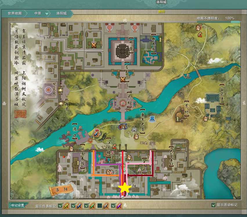 来到洛阳城地图,小叮当会在图中的线路走动,走到洛阳过图点消失,然后刷新。建议添加茗伊焦点‘小叮当’,找起来比较方便。