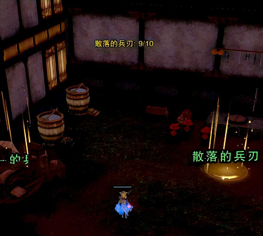 来到镖局,对话李文绮,帮助她收集院子里散落的兵刃,一共需要十份。